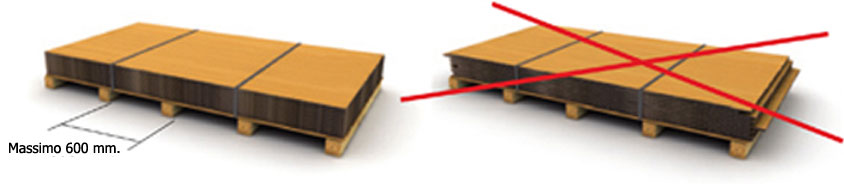 Non è consentito lo stoccaggio verticale dei pannelli, i quali si possono appoggiare verticalmente solo provvisoriamente e per un breve periodo di tempo (sempre inferiore ad 8 ore).